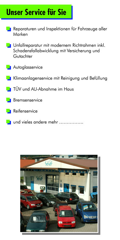 Impressum: Auto Schäf · Uwe Schäf · Im Horben 9 · 71560 Sulzbach · Tel. 07193-7054 · Fax 07193-7634 · eMail